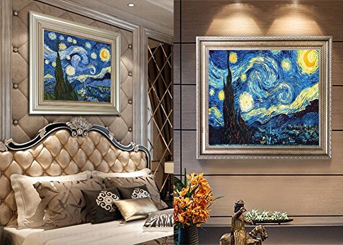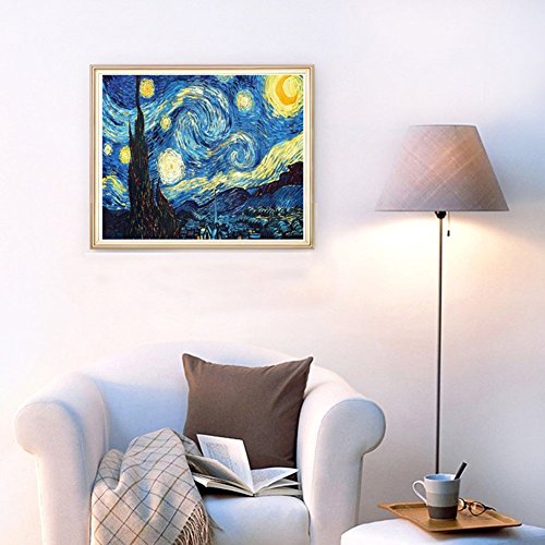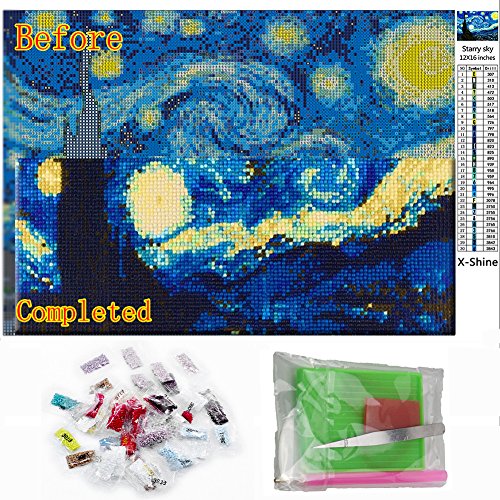 5D DIY Starry Night Diamond Painting By Number Kits For Adults Round Full Drill Crystal Rhinestone Van Gogh Embroidery For Canvas Wall Decoration 12X16 Inches