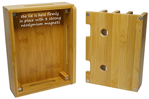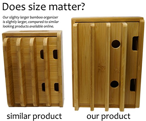 BAMBOO Wood Office Desk Organizer & Charge Station - Hide your USB hub & Organize wires under Magnet Mount top - for iPhone, iPad, Android Tablet & Smartphone - for Home or Work or Bedside, Handmade