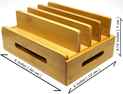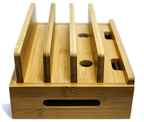 ORGANIZED - 4 conveniently spaced slots with a compartment beneath to store your USB hub (not included) allow a cluttered desk or night stand to become organized and neatly contained.