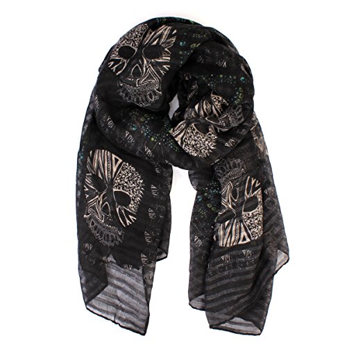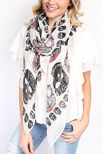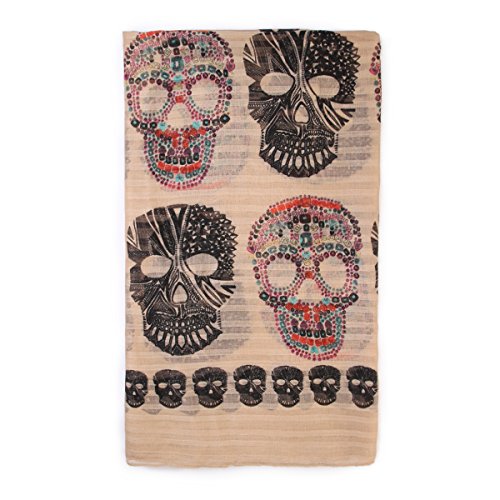 Product DescriptionWith its multi color ethnic-inspired vibe, this oversized lightweight scarf takes the skull-print trend to the next level. This graphic shawl scarf will pop against a neutral outfit.0