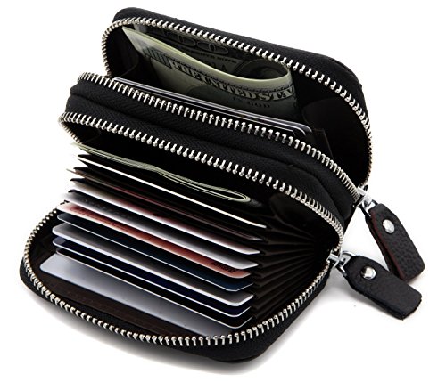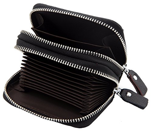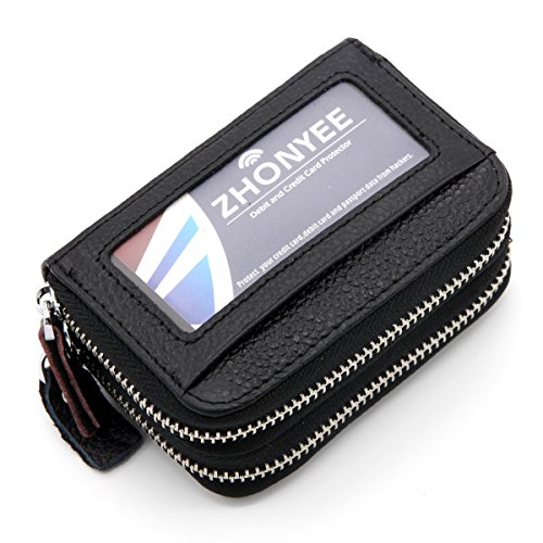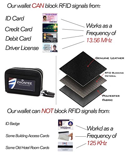 -. Binding : Apparel -. Brand : ZHONYEE -. ClothingSize : Small -. Department : womens -. Feature : Geniune Leather / RFID Blocking Technology - Integrated RFID blocking technology protects your card information from electronic theft by blocking RFID readers / 2 Zippered Compartments & ID window - 2 Big compartments with 11 card slots and 2 large slots can hold 12-18 credit cards,some cashes,coins and ID card. / Outside ID window / Size:4.2"(L)x3.1"(W)x1.8"(H)inches -. ProductGroup : Apparel -. ProductTypeName : ACCESSORY -. Size : Small -. Title : ZHONYEE Genuine Leather RFID Identity Safe Double Zippered Accordion Wallet