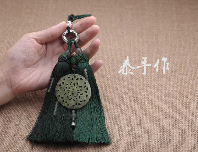 原创高档汽车挂件和田玉平安东陵玉小叶紫檀流苏轿车载后视镜挂饰