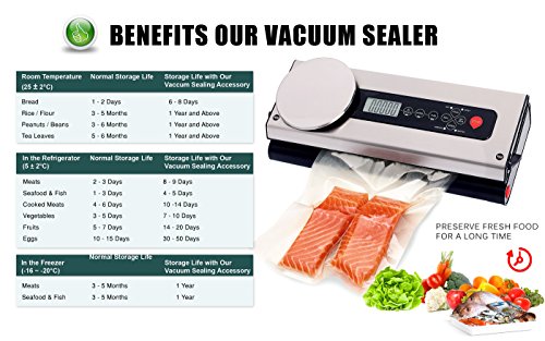 - • Vacuum seal. Healthy Meal Planning – Improve and organize your portion control, dieting, or fitness goals with our built-in LCD food scale that lets you measure precise portions.