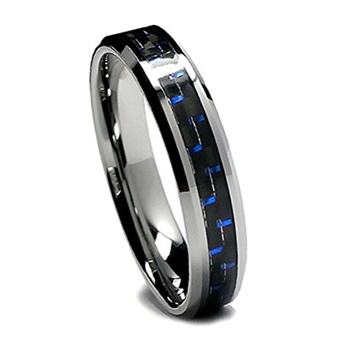 -. Feature : Women Tungsten Carbide Wedding Band, Classy, High End Design / Flat Top, Black and Blue Carbon Fiber, Bevel High Polish Edge / Perfect Wedding Band or Engagement Ring / Comfort Fit, High End, and Stylish Design / Scratch Proof, Shiny Resistant, Great for Everyday Wear