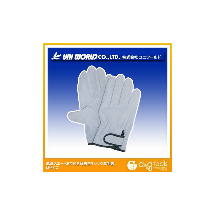 원본상품명: ユニワ?ルド 豚革スエ?ドあて付き背?きマジック革手袋 M 320-M