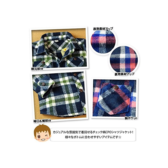 원본상품명: (グリ?ン/95cm)ベビ?服 男の子 アウタ? CPOシャツジャケット 長袖 チェック柄 起毛 胸ポケット 男? ベビ?