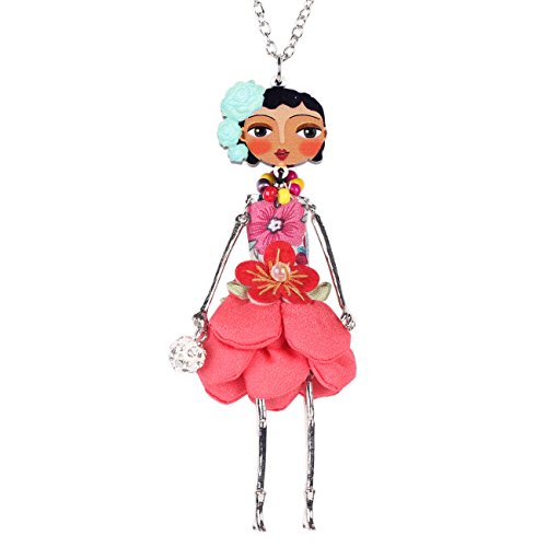 -. Title : Bonsny Paris Doll Necklace Dress Handmade Pendant Alloy Crystal Flower Long Chain Fashion Jewelry