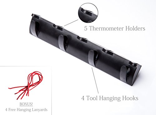 VERSATILE - Holds 4 Tools and 5 Thermometers, Re-positionable or permanently mountable with holes on designed into the back of the holder.