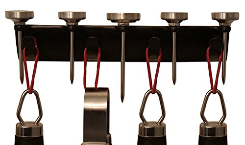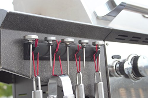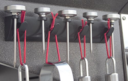 Magnetic BBQ Grill Tool Accessory Holder + BONUS LANYARD! - Holds 4 Utensils and 5 Thermometers! Great to hold spatula, tongs, brushes, skewers, scraper, mops, etc.