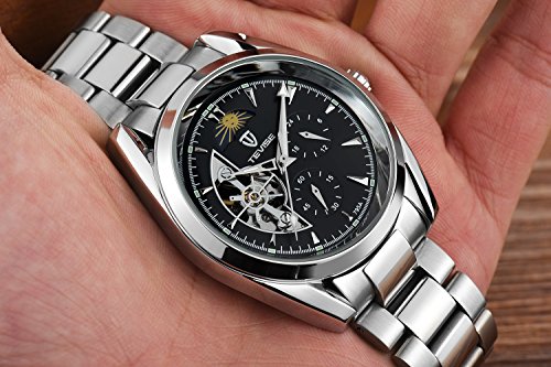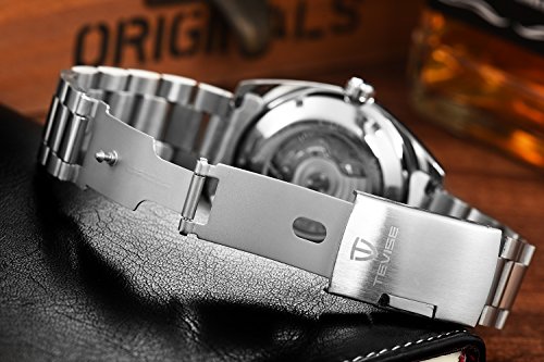 TEVISE 손목시계 맨즈 아날로그 비지니스 스테인레스 케이스 레더 밴드 자동 감기 (스테인레스*블랙)