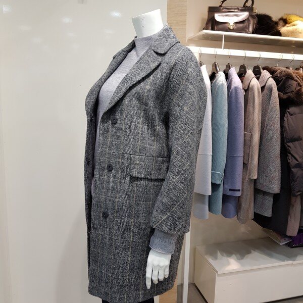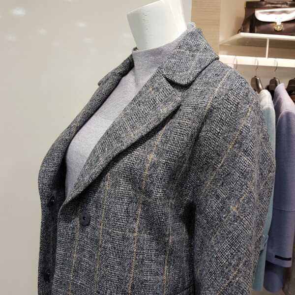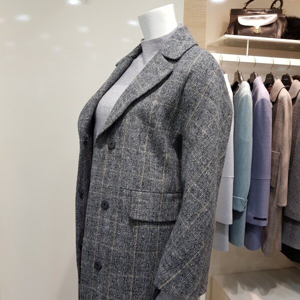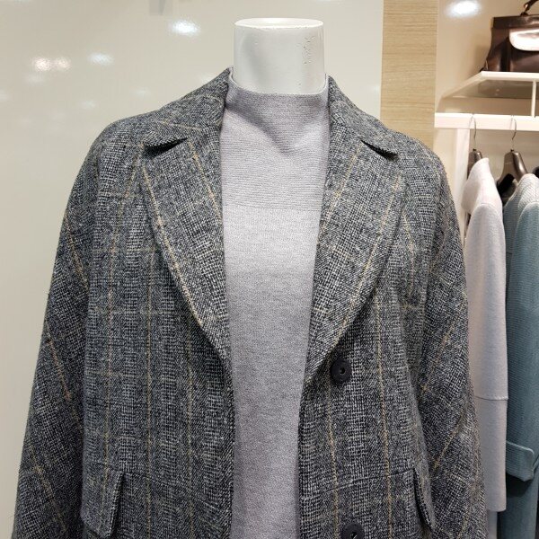 오버핏 스타일의 체크 자켓 입니다.