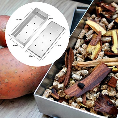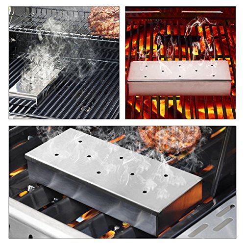 Yododo Smoker Box for BBQ Grill Wood Chips - 25% Thicker Stainless Steel Won’t Warp - Charcoal & Gas Barbecue Meat Smoking with Hinged Lid - Best Grilling Accessories & Utensils Gift