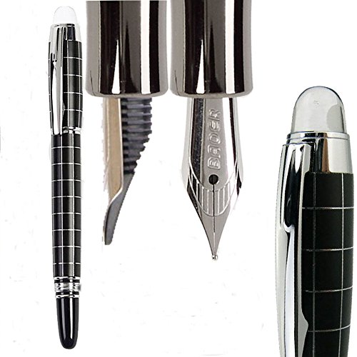 -. Title : BinaryABC Fountain Pen Baoer 79 Elegant Black & Silver Cross-line Medium Nib