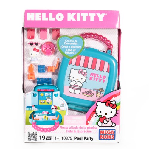 -. Binding : Toy -. Brand : Mega Bloks -. Color : Pink -. Department : baby-girls -. EAN : 0065541108752 -. Feature : Collectible Hello Kitty figurine with sunglasses and floaty ring included / Special Hello Kitty carrying case that keeps every piece secure so you can take your Pool anywhere you want! / Swinging windows / Buildable table, chairs and pool complete with slide and diving board -. Genre : strategy -. IsAdultProduct : 0 -. ItemPartNumber : 10875 -. Label : Mega Brands America Inc. - Megabloks - Fife -. Manufacturer : Mega Brands America Inc. - Megabloks - Fife -. Model : 10875 -. MPN : 10875 -. NumberOfItems : 1 -. PackageQuantity : 1 -. PartNumber : 10875 -. ProductGroup : Toy -. ProductTypeName : TOYS_AND_GAMES -. Publisher : Mega Brands America Inc. - Megabloks - Fife -. Studio : Mega Brands America Inc. - Megabloks - Fife -. Title : Mega Bloks Hello Kitty Pool -. UPC : 065541108752 -. Warranty : Lifetime warranty against manufacturer's defects