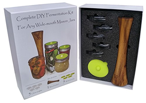 Canning kit.Complete DIY fermentation kit for wide mouth mason jars or pickling jars. 5 glass weights, 1 tamper, 5 airlock lids. Make Sauerkraut, Kimchi, Pickles or any fermented food.Premium Presents