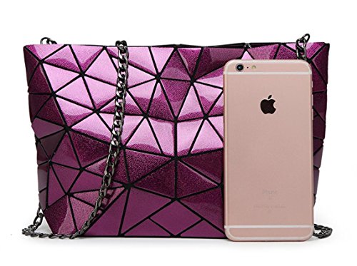 Kayers Sulliva Women's Fashion Geometric Plaid Shoulder Handbag Clutch Purse with Black Metal Chain Strap