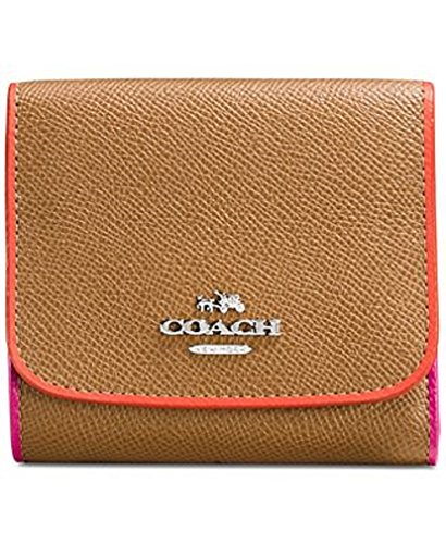 COACH SMALL WALLET IN TRICOLOR EDGESTAIN LEATHER WALNUT/SILVER