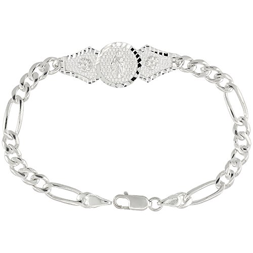 -. Title : Sterling Silver St. Jude Figaro Link Bracelet 1/2 inch wide, 7 inch long