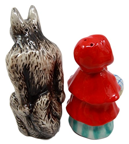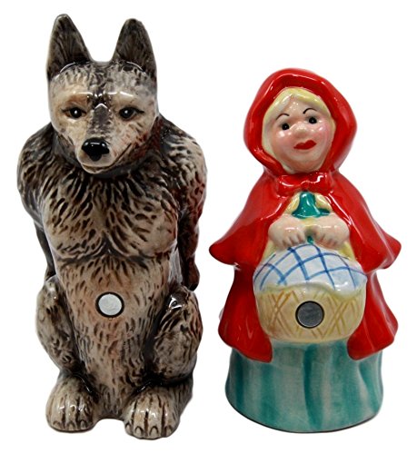 Atlantic Collectibles Little Red Riding Hood Salt & Pepper Shakers Big Bad Wolf Ceramic Magnetic Figurine Set 4.5"H