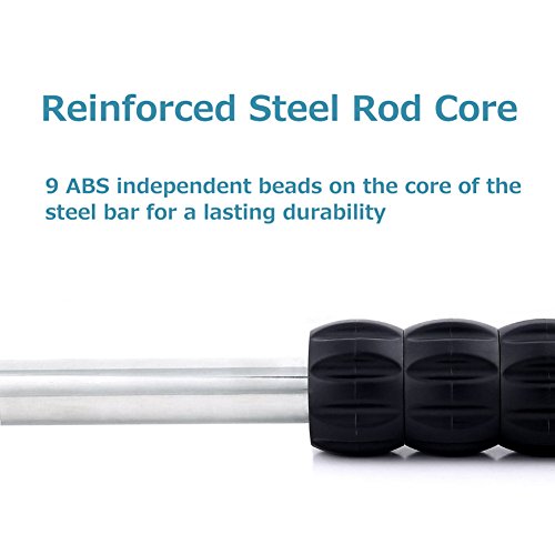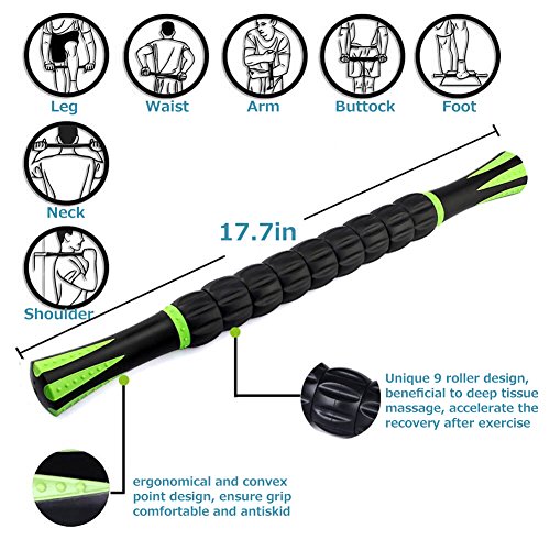 Specifications Material: ABS Rubber Stainless Steel Size: 17.7" x 1.6" Weight: 0.71lbs Package Content: 1*THINK SOGOOD Muscle Roller Stick Feature: It looks like light and simple. However, it can be used in fitness training with obvious effect. Not only can it intensify the core strength of the body, improve balance and coordination, but also the relaxation technique of massage stick is more and more widely used in fitness, sports, recovery. Massage Roller: Unique 9 roller design, beneficial to deep tissue massage, accelerate the recovery after exercise, rapidly relax the tense muscles, effectively reduce the tertian muscle soreness. Rubber Handle: The rubber handle is designed with concave arc, made of PVC soft material. Dual grip handle helps you hit those hard-to-reach spotsand allows for uncomplicated self-massages. Gear Design: The design of the gear pattern on the side of the handle has a full sense of motion, produce a sense of resistance and grip on the contact surface of the palm, ensure grip comfortable and antiskid.