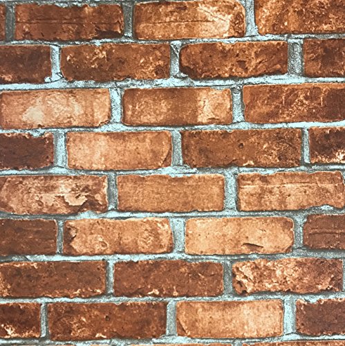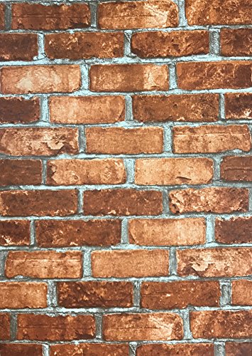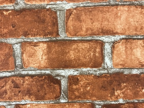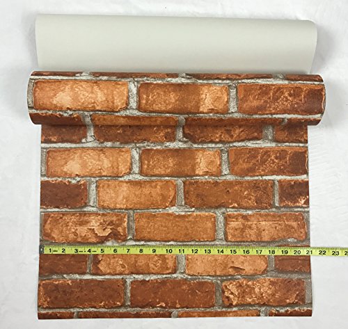 -. Title : Slavyanski vinyl wallpaper red orange rustic coverings textured old vintage retro faux stone brick pattern double roll wallcovering wall paper decal decor textures embossed 3D washable modern kitchen