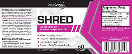 Vitamiss Shred – Maximum Strength Fat Burner Diet Supplement for Women- Shred Weight Fast While Increasing Energy and Mental Focus!