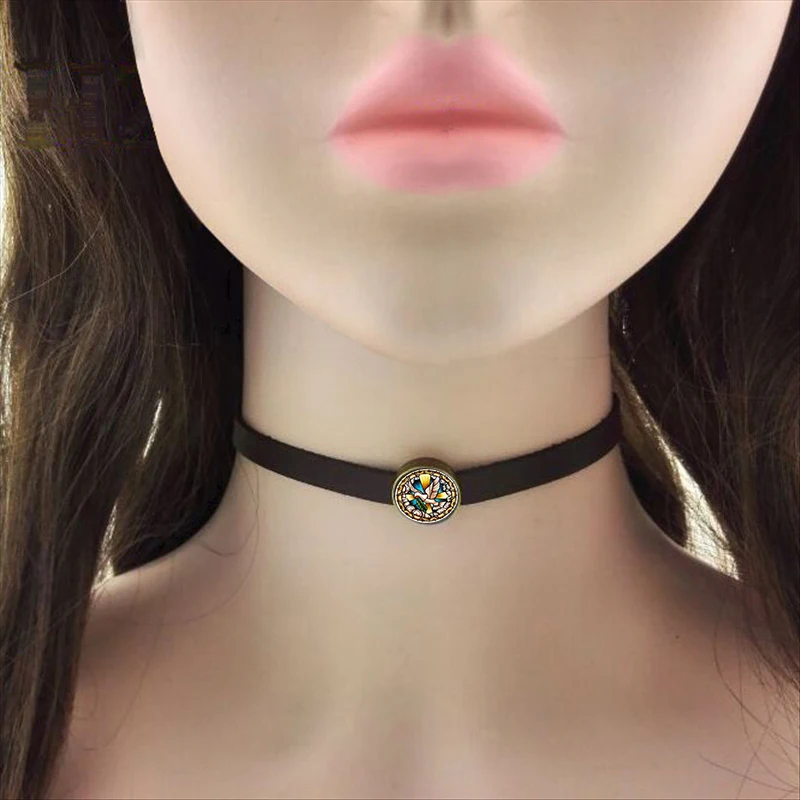 Style:black leather choker necklace