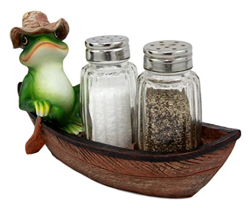 Atlantic Collectibles Toad Frog With Cowboy Hat Rowing Boat Salt Pepper Shakers Holder Figurine 7"L