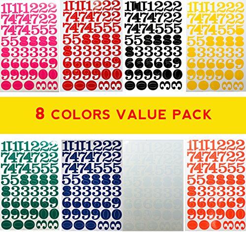 Jazzstick Large Number 0-9 Decorative Sticker Value Pack Bulk 8 sheets Assorted Colors Red/Green/Orange/Black/White/Navy/Yellow/Pink 14C