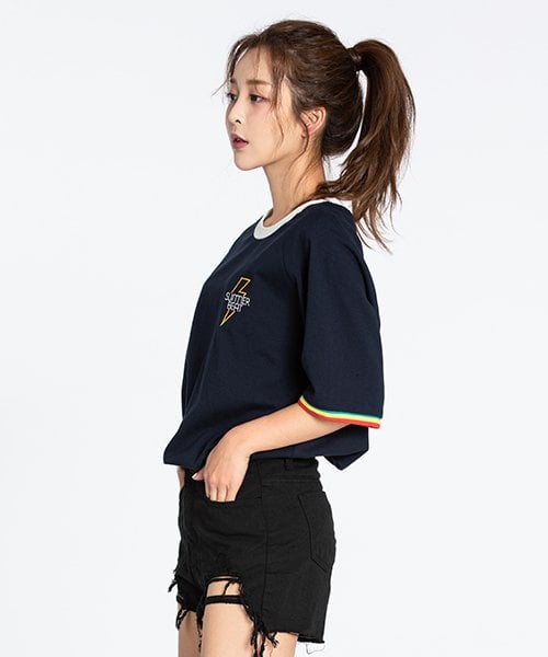 모티브스트릿(MOTIVESTREET) SUMMER BEAT RINGER TEE NAVY