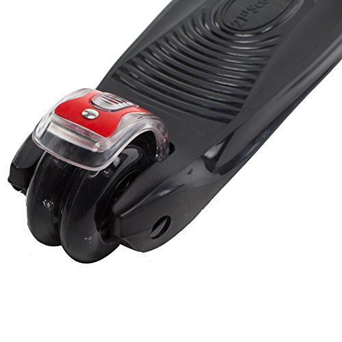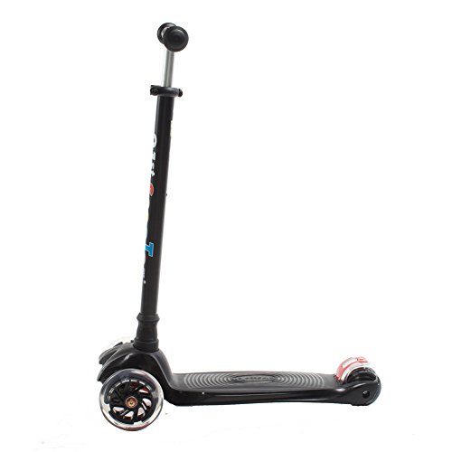 -. Feature : This Kick Scooter is Made of High Quality Aluminum Frame,Reinforced Deck Could Support More Weight,180 lb Weight is Easily to Handle Through Our Test. / This Kids Scooter Have 4 Wheels with Beautiful Led Flash Light,So Attractive During The Day and Night,and No Batteries Needed. / The Handle Bar Height Adjusts Easily from 25 Inches to 35 Inches Which Grow with Your Child,The Silicone Handle Bar is Soft,More Suitable for Children`s Delicate Hands / The Large Brake Pedal of the Scooter with a Steel SP.R.Ings Baffles,It will not Become Hot or Soft When Braking,Large Reinforced Brake Pedal Ensure Greater Safety / The Plastic Pedal Reinforced with Glass Fiber,It Has Nice Grip on The Feet,Has Good Balance and Stability,The Deck Is Wide,It Measures 20 Inches Long and Widest at 5.5 Inches, Kids Won't Slip from It
