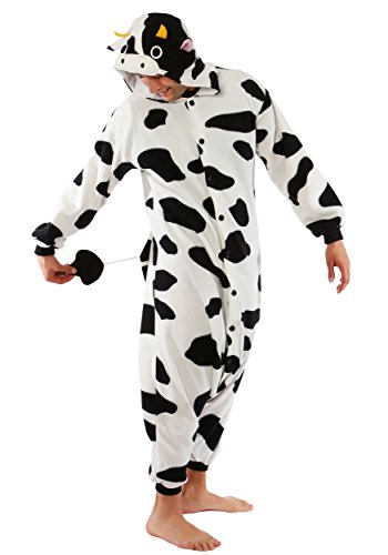 Remoo-ve all inhibitions when you sport this hilarious Cow Kigurumi, complete with a black and white body, two little horns and a tail. Searching for the right costume for the moo-vies? Like polka dots but want something more mesmoo-rizing? Is looking good your M.O. (O.)? Can't find pajamas that fit your moo-d?? This Kigurumi finds itself in the Cute and Cuddly section of our shop. However, make no mistake: mess with the bull and you'll get the horns. Moo.Feature