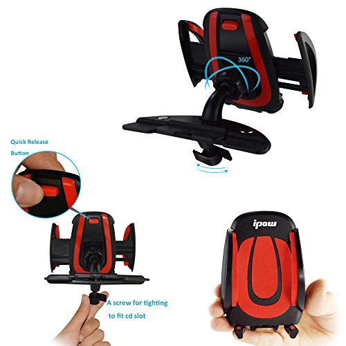 Ipow Universal 360°Swivel CD Slot Car Mount Holder Cradle with A Quick Release Button for iPhone 6 6 Plus 6S 6S Plus 5 5S,iPod Touch,Samsung Galaxy S3 S4,LG G3,Nexus 4/5,HTC,Motorola,Sony&GPS Devices