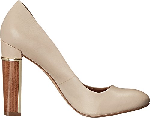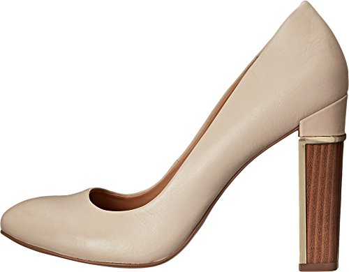 Slip-on design. Man-made lining and lightly cushioned footbed. Chic heel boasts wood grain and brand-engraved, gold-tone hardware. Synthetic outsole. Imported.