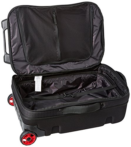 Compression molded eva tray, custom Oakley skid plate and wheel set, split main opening allows easy access to gear, meets most airline carry-on size requirements, telescoping handle, multiple carry ha