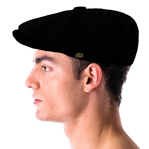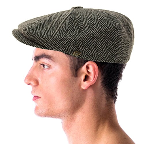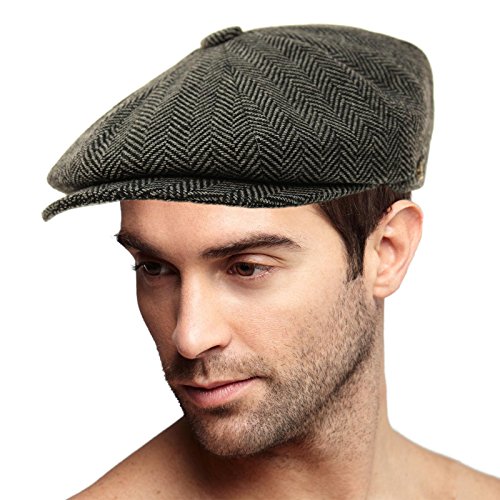 A must of Everyday 100% Wool body 8 panel visor bill newsboy paperboy poorboy gatsby cabby cabbie driving cap hat Everyone needs a cap like this for all occasions, bull 8 panel body with fitted clean back with interior sweatband. Soft curved brim. Perfect for a bad hair day. Great for all seasons, Perfect for warm or cool weather to keep harmful sun and UV rays out of your face. Ideal for everyday wear, or just for fun! Will compliment any outfit. Mix and match with your existing wardrobe. Great for vacations and outdoor activities. Flat caps were very common for North American and European men and boys of all classes during the early 20th century and were almost universal during the 1910s-20s, particularly among the working 'lower' classes. Caps worn not only by newsboys, but by dockworkers, high steel workers, shipwrights, costermongers, farmers, beggars, (such as Oliver Twist), bandits, artisans, and tradesmen of many types. 0 |