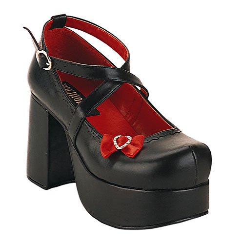 Binding : Apparel Product Description This Abbey pump from Demonia by Pleaser is so sassy and sweet with its majorly big-girl mary jane style, but thanks to the in-your-face and daring platform and heel, this look packs plenty of fierce fashion. Alternative, defiant and nonconforming enthusiasts look no further than Demonia for the most cutting-edge, beyond the ordinary line of footwear. The demonic diva connotation is by no means gender exclusive. Demonia not only reflects the alternative, underground lifestyles, it defines it. ABBEY-03, 3-1/2" Platform Mary Jane Inspired with Criss Cross Strap, Black with 3 Interchangeable Clip On Bows. Sizes are in Womens. To convert to Mens, go down two sizes. For example, a Womens size 12 is equivalent to a Mens size 10. 0