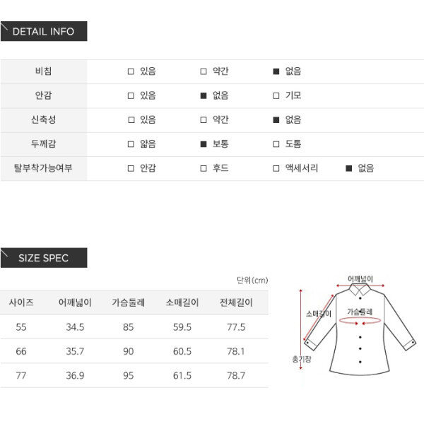 중성세재로 손세탁이 가능하며 구김이 거의 안가는 원단이에요.