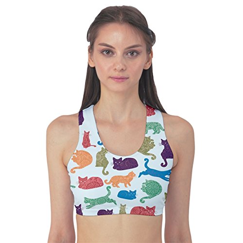 Blue Colorful Cats Silhouettes Pattern Women's Sport Bra
