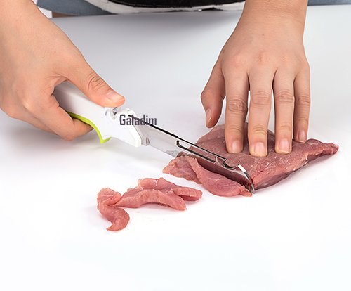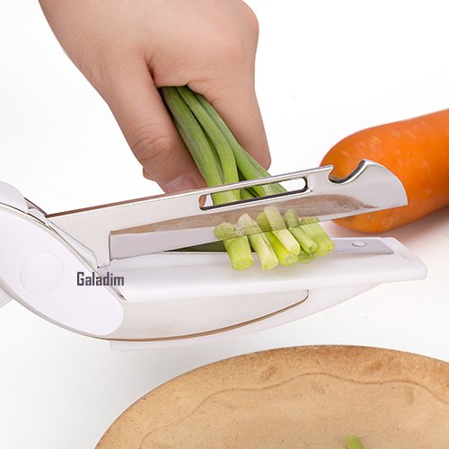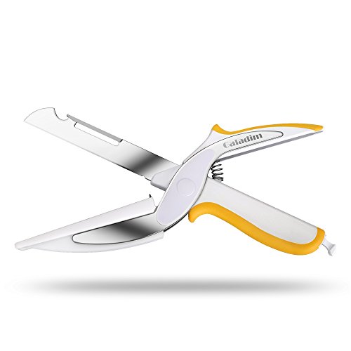 Galadim Kitchen Shears With Built-in Cutting Board - Multipurpose Clever Kitchen Cutter Scissors - Ideal Tool for Picnic (Knife with Cutting Board, Fruits Peeler, Chef's Knife, Bottle Opener) (Orange)