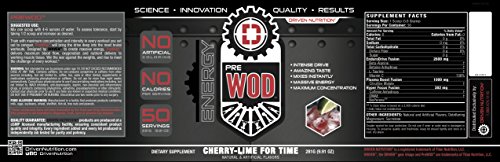 -. Binding : Health and Beauty -. Brand : Driven Nutrition -. EAN : 0741498318245 -. Feature : HIGH QUALITY INGREDIENTS: If you are looking for a pre workout that delivers maximum energy, focus and stamina, PRE WOD is for you! / FORMULAS ENGINEERED FOR SERIOUS ATHLETES: Only the high quality ingredients are use in our formulas, giving you maximum intensity to conquer any workout! / RAZOR SHARP FOCUS: What sets PRE WOD apart from your run of the mill pre workout is the intense concentration and mental clarity PRE WOD will give you! The combination of DMAE and Caffeine anhydrous is an extremely effective One-Two punch that is a guarantee to knock out any pre-workout grogginess. / AMAZING TASTE: Say good by to bitter pre workout that clump up. PRE WOD Cherry Lime For Time is a delicious and and perfectly tart flavor that tastes incredibly similar to a real Cherry Limeade! -. IsAdultProduct : 0 -. Label : Driven Nutrition -. Manufacturer : Driven Nutrition -. MPN : Driven Nutrition -. PackageQuantity : 1 -. PartNumber : Driven Nutrition -. ProductGroup : Health and Beauty -. ProductTypeName : HEALTH_PERSONAL_CARE -. Publisher : Driven Nutrition -. Studio : Driven Nutrition -. Title : PRE WOD- The Ultimate Cognitive Enhancing Pre-Workout Supplement-50 servings- Increase focus and sustained energy (Cherry Lime For Time) -. UPC : 741498318245