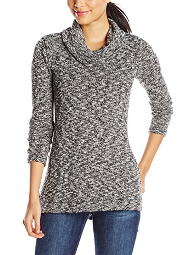 Marled-knit tunic sweater featuring cowl neckline and side splits at hem