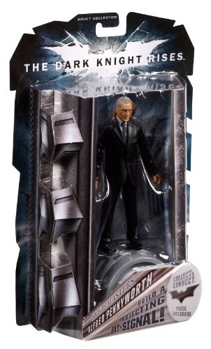 -. Binding : Toy -. Brand : Mattel -. EAN : 0746775072728 -. Feature : Based on the hit new Batman film, The Dark Knight Rises / The Movie Masters line offers fans the premium collecting experience / True-to-scale, figures are expertly crafted to ensure the highest standards for your collection / Features 6" scale, authentic detail, deluxe articulation, and quality / Each figure comes with Collect and Connect piece to create a lighted Batsignal -. IsAdultProduct : 0 -. Label : Mattel -. Manufacturer : Mattel -. Model : W7180 -. MPN : W7180 -. PackageQuantity : 1 -. PartNumber : W7180 -. ProductGroup : Toy -. ProductTypeName : TOYS_AND_GAMES -. Publisher : Mattel -. ReleaseDate : 2012-05-27 -. Studio : Mattel -. Title : Batman The Dark Knight Rises Movie Masters Alfred Pennyworth Collector Figure -. UPC : 746775072728 -. Warranty : 1 year warranty against manufacturer defects