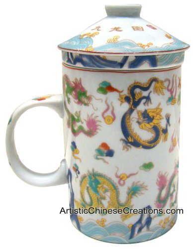 -. Binding : Kitchen -. Brand : Artistic Chinese Creations -. Color : white -. EAN : 0500009535461 -. Feature : Chinese Porcelain Tea Cup (With Lid & Removable Strainer) - Dragons / Tea Cup Size: 5" x 4.5" x 3" (12.5cm x 11.5cm x 7.5cm) / This beautiful Chinese porcelain tea cup is decorated with Chinese dragon symbol. / The three piece set includes a mug, lid, and removable diffuser for brewing loose or bagged tea. Holds 10 oz of liquid. / In this beautiful tea cup you can experience years of tea drinking. -. Label : Artistic Chinese Creations -. Manufacturer : Artistic Chinese Creations -. ProductGroup : Home -. ProductTypeName : HOME -. Publisher : Artistic Chinese Creations -. Studio : Artistic Chinese Creations -. Title : Chinese Teaware / Chinese Porcelain / Chinese Tea Cups: Chinese Porcelain Tea Cup (With Lid & Removable Strainer) - Dragons -. UPC : 500009535461