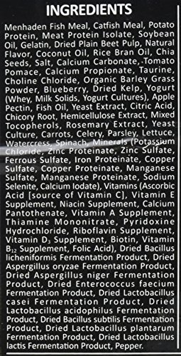 Starch free, 60% meat, 60% protein and 11% fat minimum, with prebiotics, probiotics, enzymes, nutraceuticals, vitamins and minerals