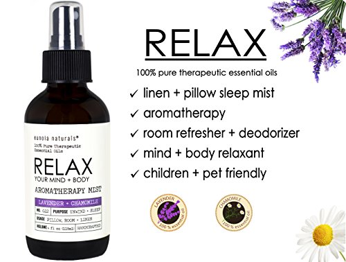 RELAX- Lavender Pillow + Sleep Spray, Lavender + Chamomile Aromatherapy, Lavender Pillow Mist, All Natural Ingredients, Pure Essential Oil Blend,...