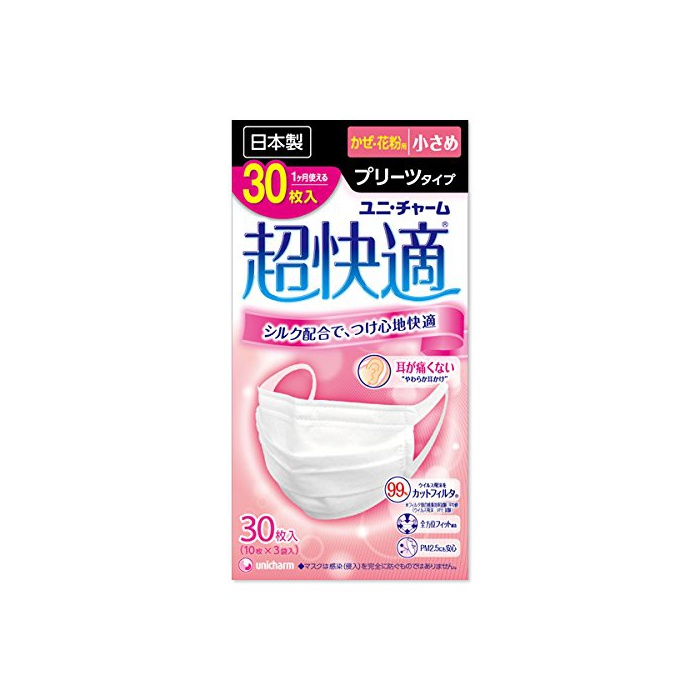 원본상품명: (日本製 PM2.5??)超快適マスク プリ-ツタイプ 小さめ 30枚入(unicharm)
