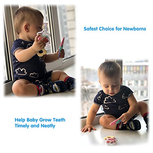 Soft and flexible infant teether with different textures help to ease baby toothache, better care oral cavity. Uneven design help to massage gingival, promote oral development, prevent gum inflammation. Great for 3-12 months baby boys girls.