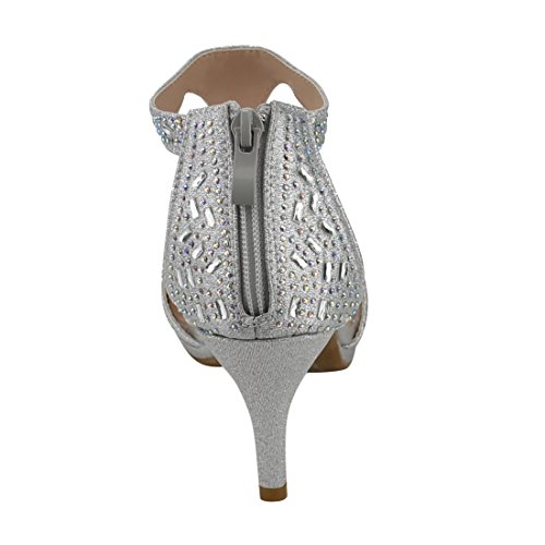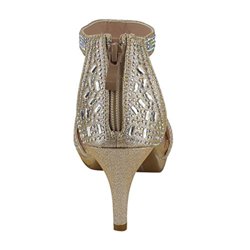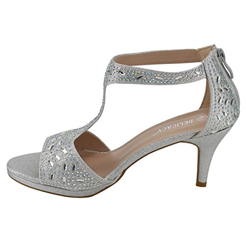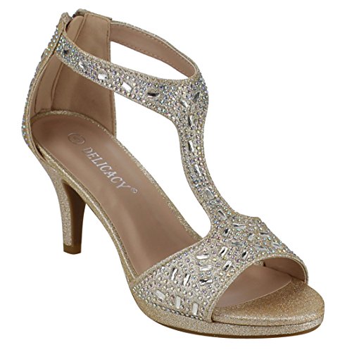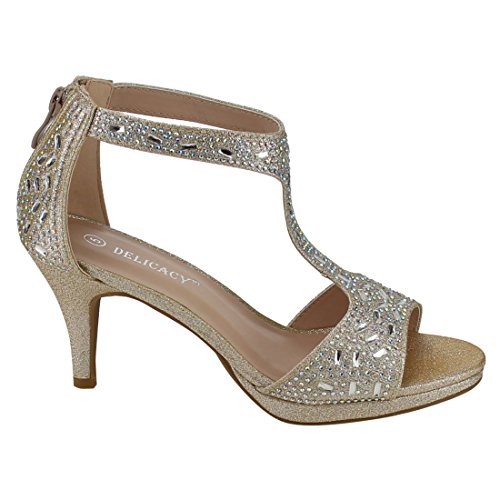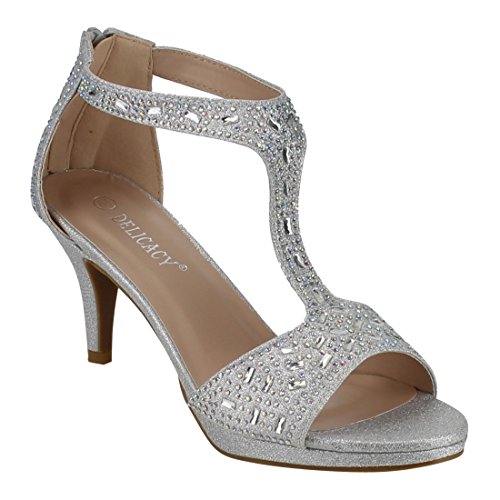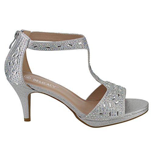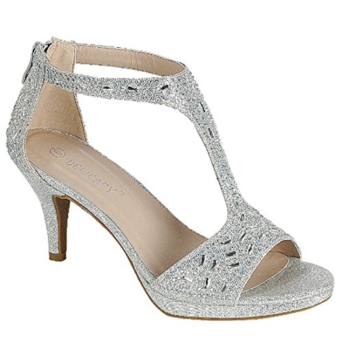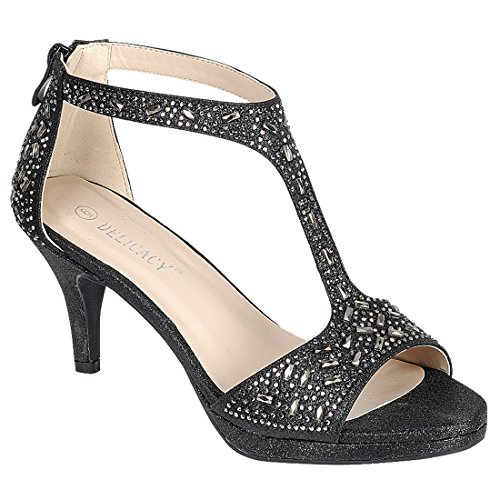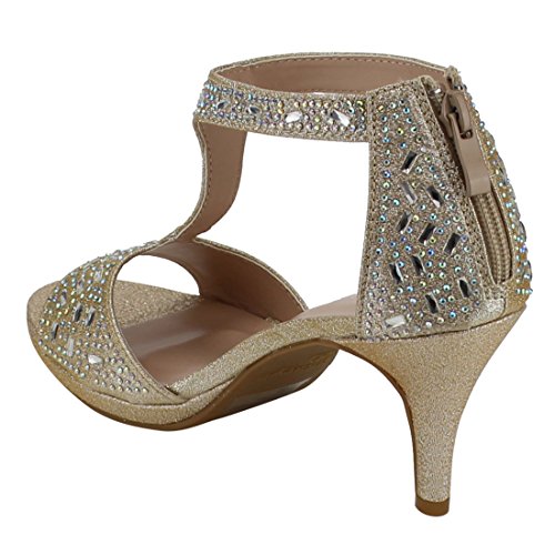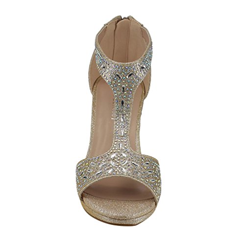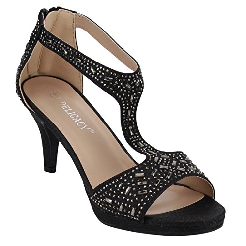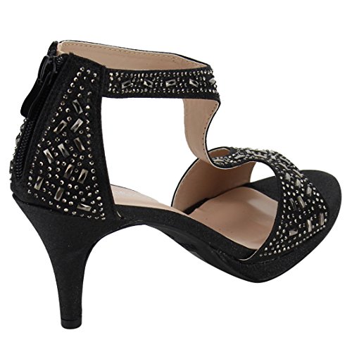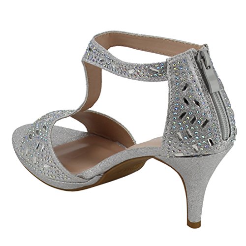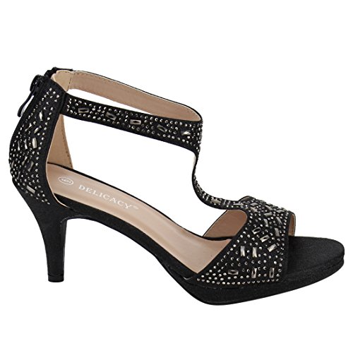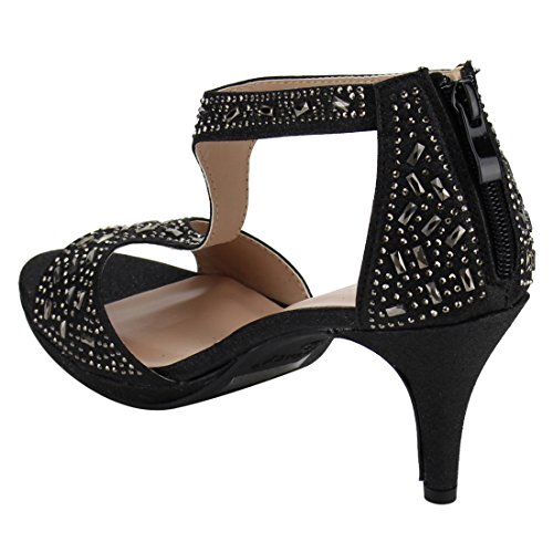 FOREVER FQ19 Women's Sparkle Rhinestone Back Zipper T-Strap Wrapped Heel Sandals