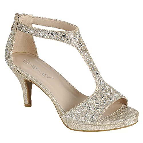 Product DescriptionWalk in fashion and comfort with these T-strap sandals are featuring rhinestone detailing, back zip up closure, platform with wrapped kitten heel, and padded footbed0